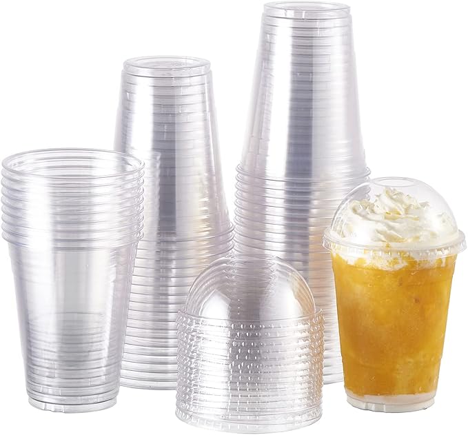 - Value Pack: Set of 100 16oz Clear Plastic Cups with Dome Lid, Works as Smoothie Cups, Milkshake Cups, Iced Coffee Cups, and Cake Cups